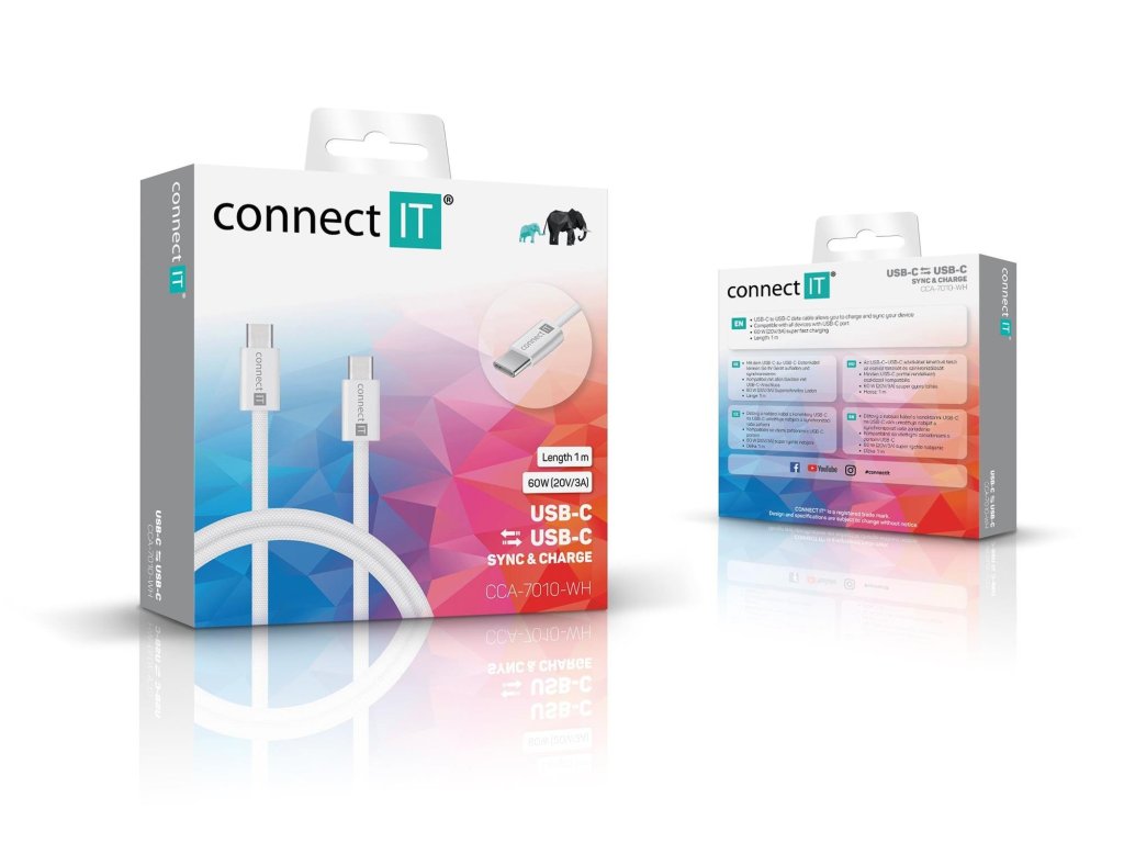 CONNECT IT Wirez USB-C -> USB-C, 60 W, 1 m, bílá