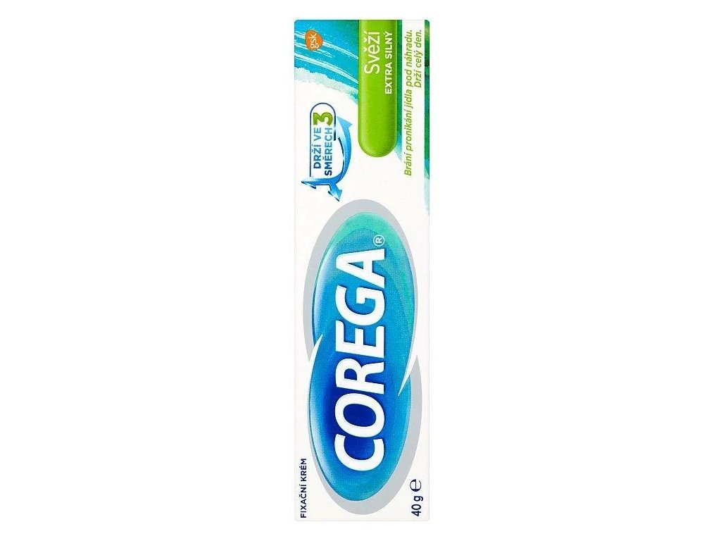 Corega Svěží dech fixační krém na zubní náhrady zajistí bezpečné usazení zubní náhrady a zabrání jejím nežádoucím posunům. Složení se svěží příchutí se postará o neobyčejně svěží pocit v ústech.