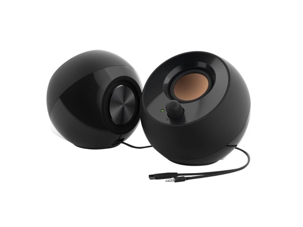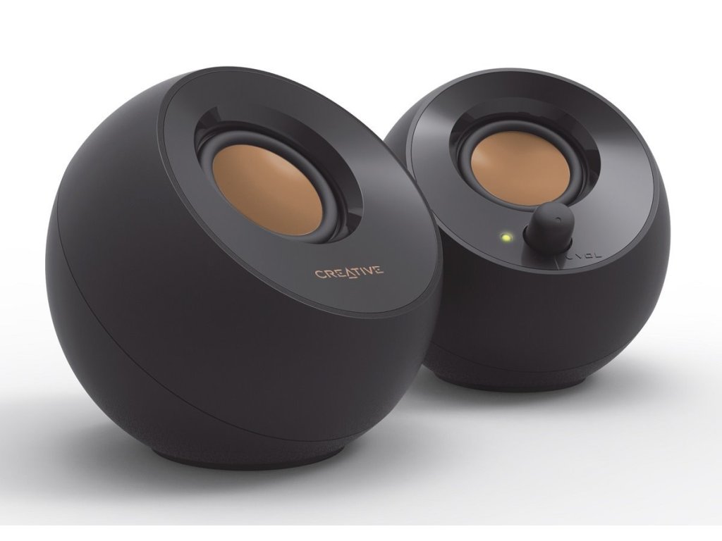 Kulovitý reproduktor Creative Pebble, inspirovaný zenovou japonskou skalkou, je moderní a elegantní 2.0 reproduktorový systém, který představuje ideální doplněk každé domácnosti a kanceláře. Zvukové pole s náklonem 45° zajišťuje vylepšené šíření zvuku. Napájení zajišťuje jediný USB kabel pro bezstarostnou zábavu.