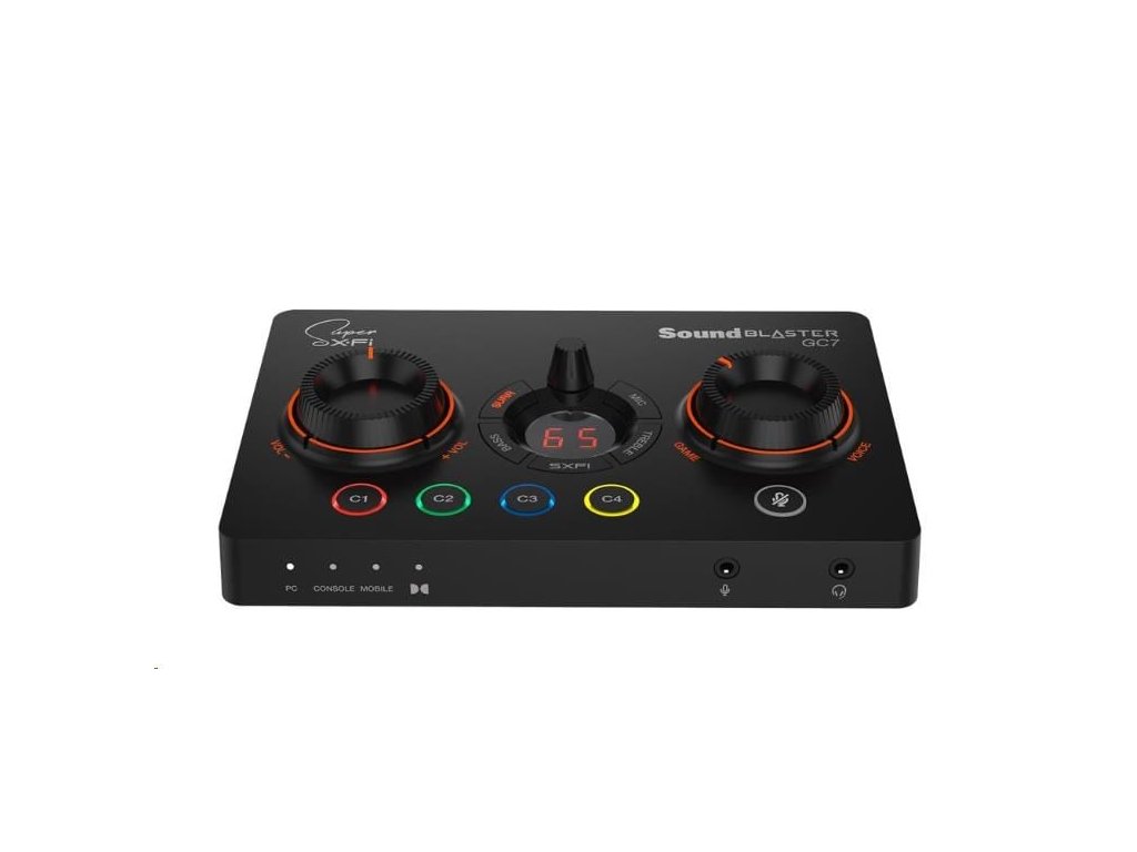 Sound Blaster GC7 má na těle čtyři programovatelná tlačítka pro rychlý přístup k uloženým předvolbám. Přizpůsobte si každé tlačítko, jak uznáte za vhodné – ať už jde o spuštění aplikace třetí strany nebo zapnutí sady konkrétních nastavení streamování pomocí zkratek – vše máte na dosah ruky. A když už jste u toho, přizpůsobte si RGB osvětlení každého tlačítka tak, aby odpovídalo zbytku vašeho nastavení, a hrajte pohodlně ve tmě s podsvícenými LED diodami.