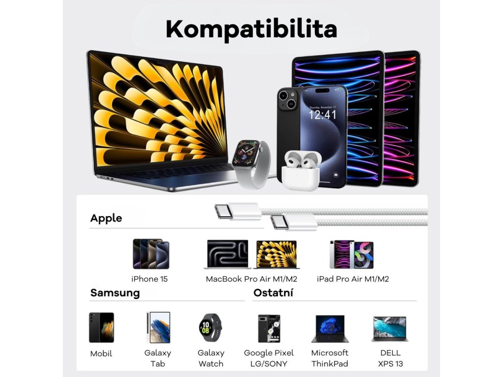 Tento univerzální kabel je kompatibilní s širokou škálou zařízení včetně nejnovějších modelů MacBook Pro/Air, iPad Pro a dalších zařízení s rozhraním USB-C. Investujte do kvality a pořiďte si opletený silikonový kabel Cubenest pro rychlé nabíjení a synchronizaci dat.