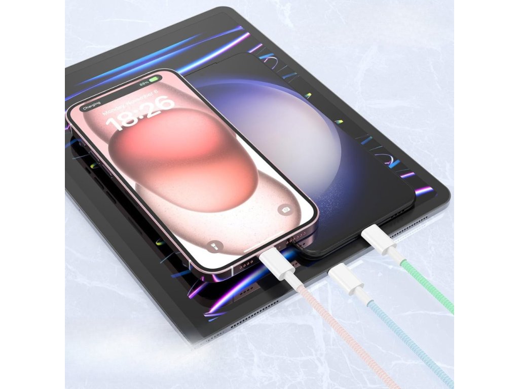 Nabíjejte svůj MacBook, iPad, iPhone nebo další zařízení bleskovou rychlostí díky podpoře USB-C Power Delivery až do 60 W. Přenášejte videa a fotografie rychlostí až 480 Mb/s. Balení po 4 ks. Bílá, růžová, modrá a zelená barva.