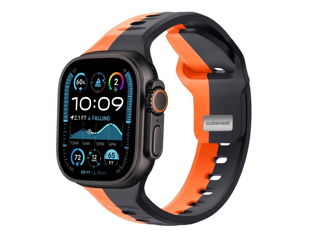 Cubenest Premium Silicone Band BLACK with Orange (42-49mm)