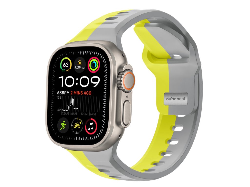 Cubenest Premium Silicone Band LUNAR GREY with Yellow (42-49mm)