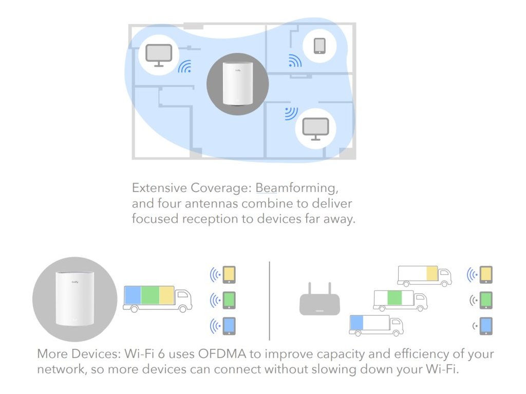 Dual-Band Wi-Fi 6 (802.11ax) - 574 Mbps (2.4 GHz) + 1201 Mbps (5 GHz)