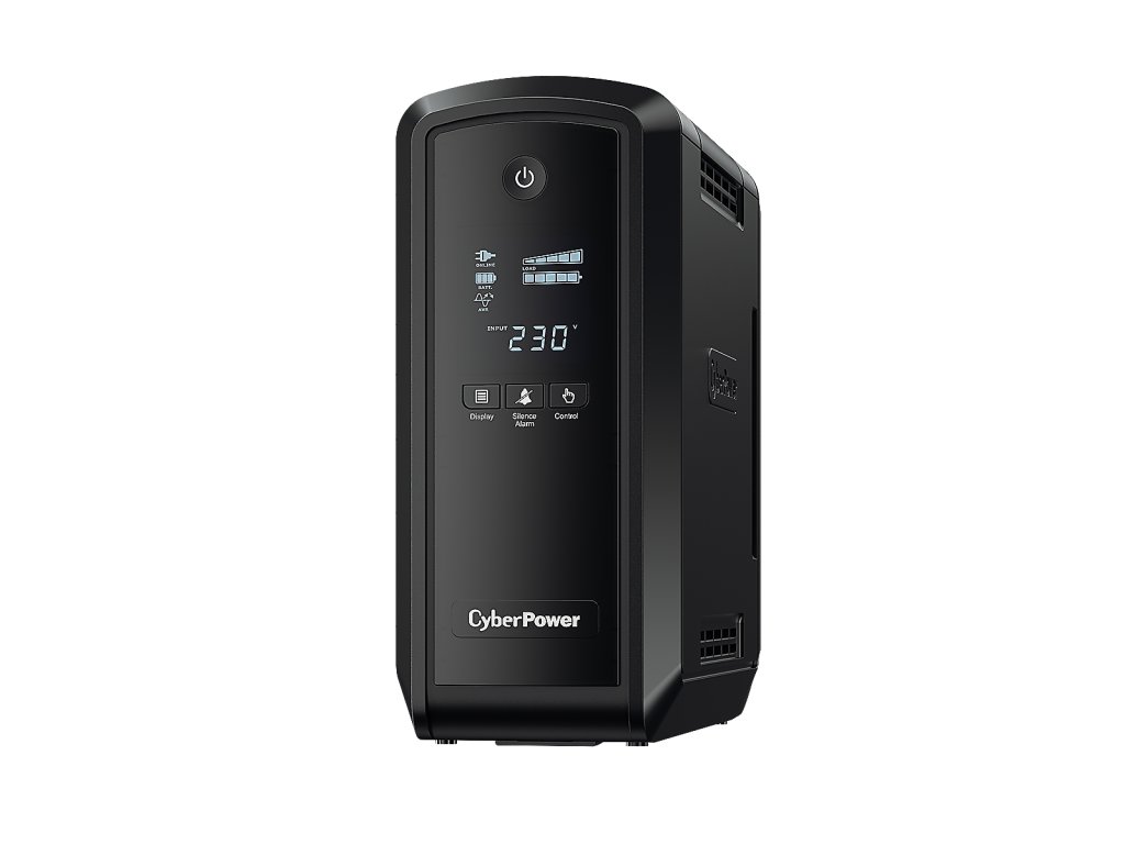 Záložní zdroj CyberPower PFC SineWave LCD GP 900VA/540W s AVR, LCD displejem, ochranou datových linek a USB pro správu napájení.