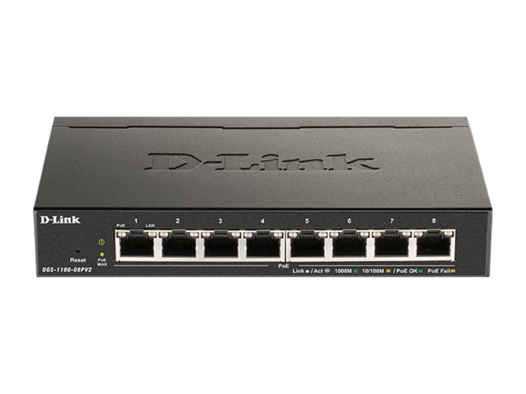 D-Link DGS-1100 V2 je nová generace Gigabit Smart řízených přepínačů určených pro malé a střední podniky (SMB), pracovní skupiny (workgroup) a kanceláře (SOHO). Model DGS-1100-08PV2 je osazen 8 porty 10/100/1000 Mbps PoE. Switch je v kovovém proveden bez větráků, což zajišťuje jeho tichý chod a je určen k umístění na stůl či poličku.