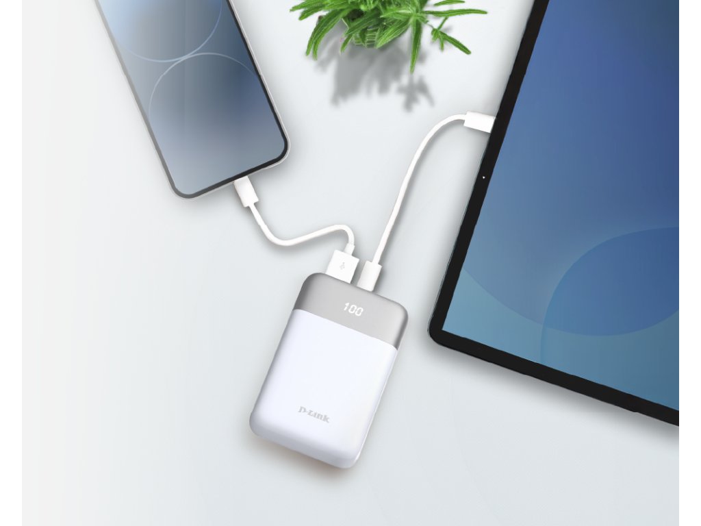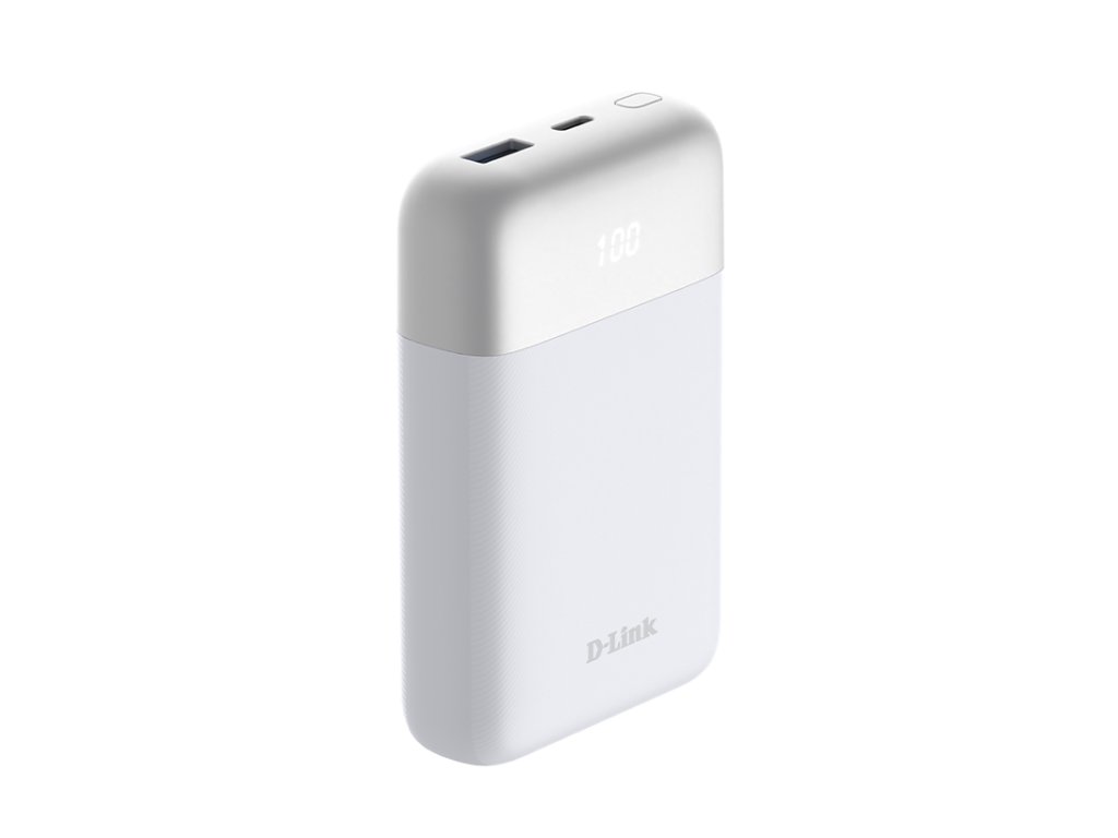 Power banka D-link 10 000 mAh, 1x USB-C pro použití jako vstup USB-C (18 W) nebo výstup USB-C (18 W Power delivery 3.0) , výstup 1x USB-A (18 W QC 3.0) , LED displej, kabel USB-C na USB-C (100 cm), bílá barva