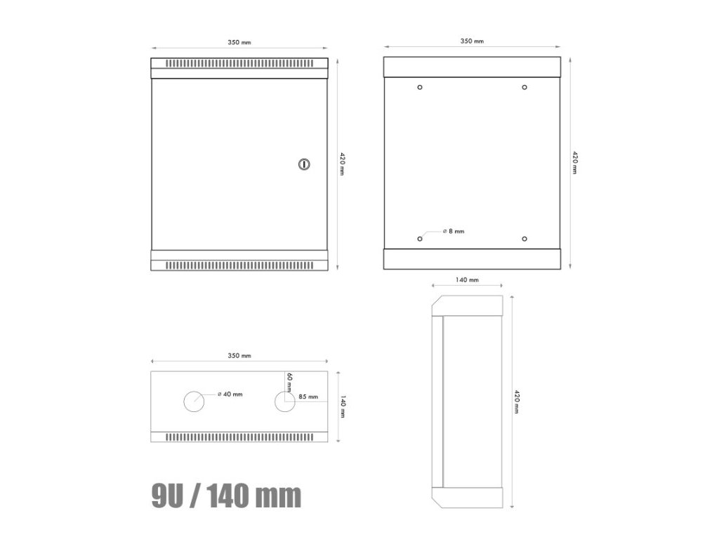 DATACOM 10" nástěnný rozvaděč 9U/140 mm (plech) černý
