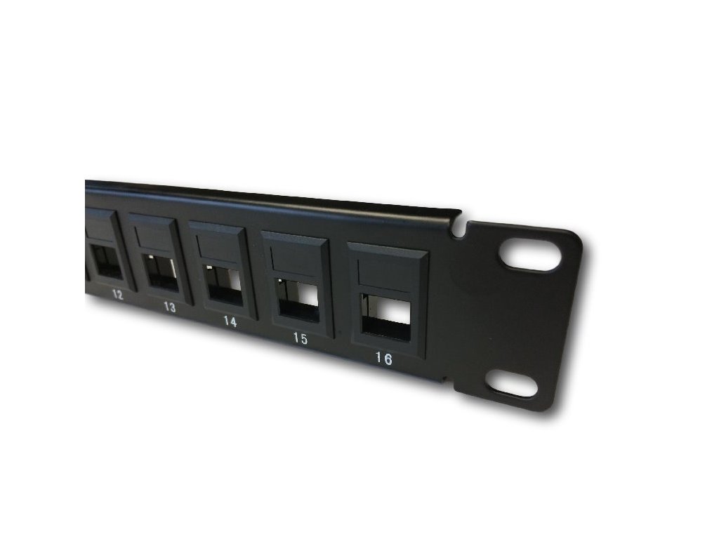 - 19" Neosazený patch panel určený pro montáž do 19" datových rozvaděčů.