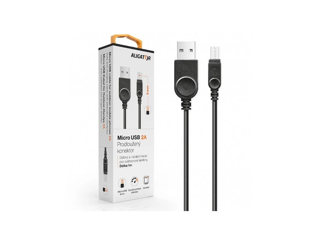 Datový a nabíjecí Micro-USB kabel s prodlouženým konektorem pro outdoorové telefony ALIGATOR: