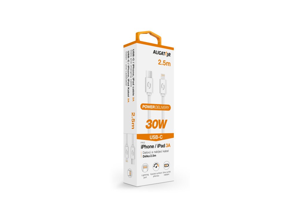 Datový kabel ALIGATOR POWER 30W, USB-C/Lightning 3A, 2,5m bílý