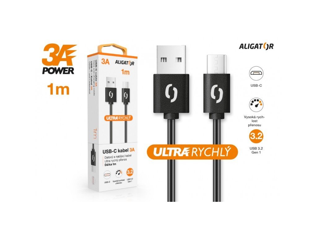Datový kabel ALIGATOR POWER 3A, USB-C , 1m černý