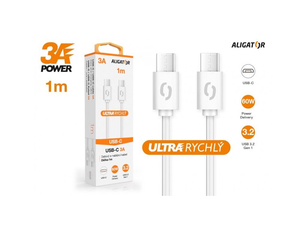 Datový kabel ALIGATOR POWER 3A, USB-C/USB-C, 1m bílý