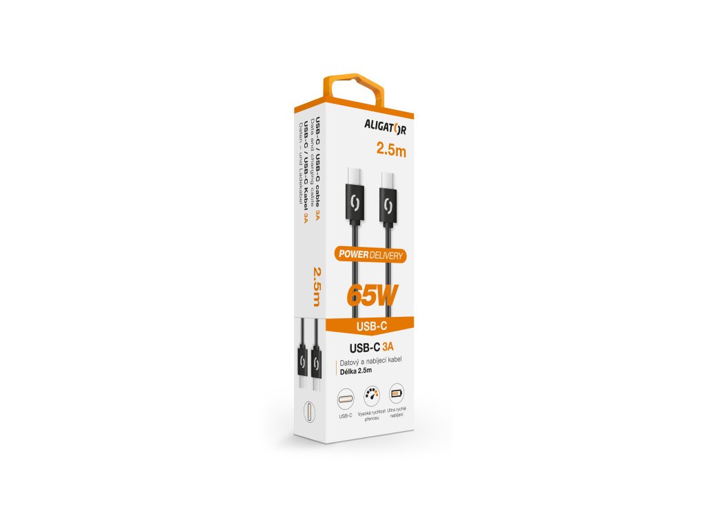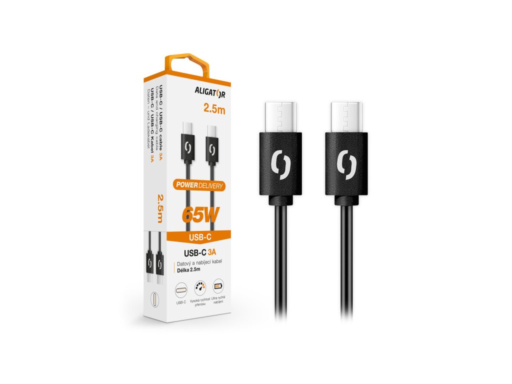 Datový kabel ALIGATOR POWER 65W, USB-C/USB-C 3A, 2,5m černý