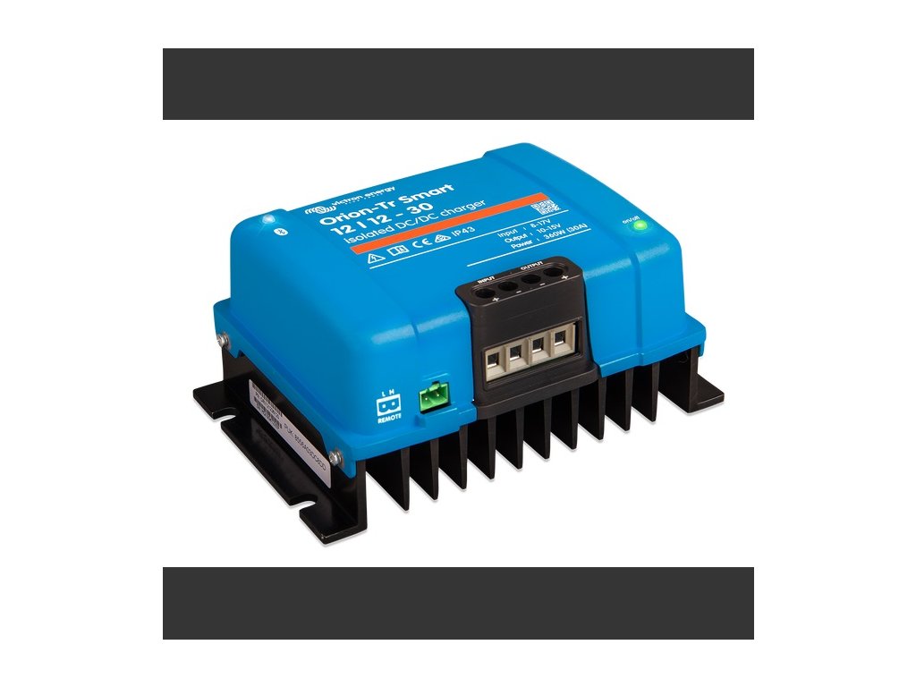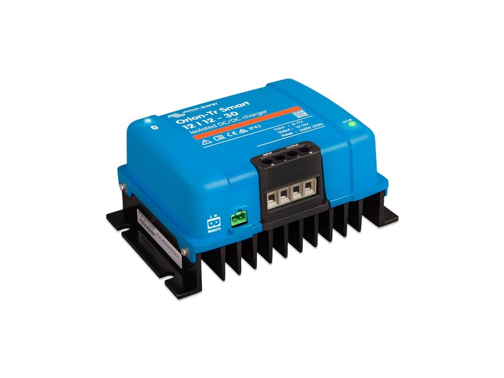 Nabíječka Victron Energy Orion-Tr Smart DC-DC je profesionální DC-DC adaptivní třístupňovou nabíječkou se zabudovanou funkcí Bluetooth. Je určena pro použití v duálních bateriových systémech ve vozidlech nebo na lodích, kde se k nabití servisní baterie používají (inteligentní) alternátor a startovací baterie. Jednotku lze monitorovat a programovat přes Bluetooth a ovládat dálkově pomocí dálkového spínače zapnutí/vypnutí. Nabíječka je také vybavena mechanismem detekce chodu motoru.