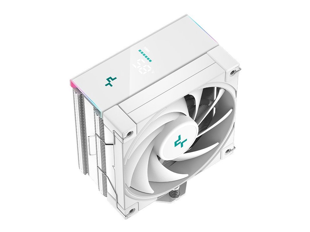 Chladič, pro CPU, pro Intel i AMD, socket 1700, 1200, 115x, AM5, AM4, 220W TDP, 120mm ventilátor, 4 heatpipe, digitální displej, bílý