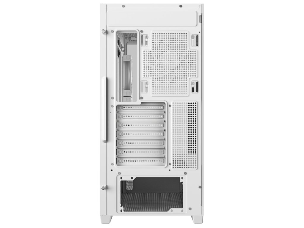 Skříň, Middle tower, bez zdroje, ATX, 4× 120mm ARGB fan, 2× USB 3.0, USB-C, průhledná bočnice a přední panel, tvrzené sklo, bílá