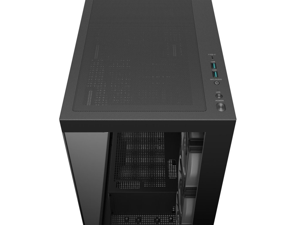Skříň, Middle tower, bez zdroje, ATX, 4× 120mm ARGB fan, 2× USB 3.0, USB-C, průhledná bočnice a přední panel, tvrzené sklo, černá