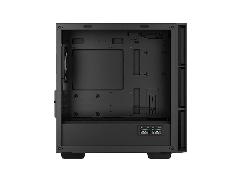 Skříň, Middle tower, bez zdroje, mATX, 2× 140 mm a 1× 120mm ARGB ventilátor, 1× USB-C, 1× USB 3.0, průhledná bočnice, mesh panel, displej, černá