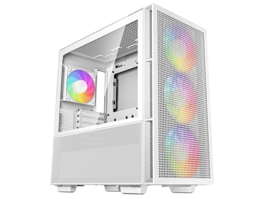 Skříň, Middle tower, bez zdroje, E-ATX, 3× 140mm a 1× 120mm ARGB ventilátor, 1× USB, 1× USB-C, tvrzené sklo, bílá