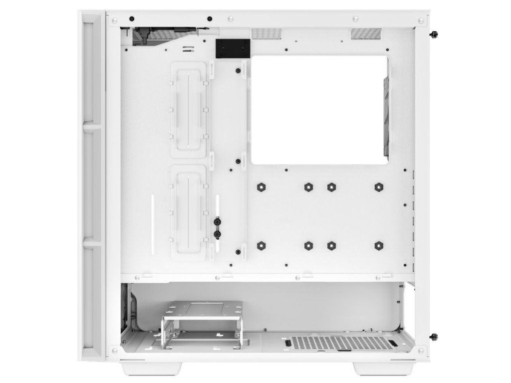 Skříň formátu Middle Tower s průhlednou bočnicí nabízí dvě 2,5" pozice pro SSD disky a dvě 3,5" pozice pro pevné disky. Na horním panelu se nachází jeden port USB 3.0, jeden port USB-C a kombinovaný port sluchátek a mikrofonu. Skříň je vybavena jedním 120 mm ventilátorem na zadní straně a třemi 140 mm ventilátory na přední straně. Všechny dodávané ventilátory navíc disponují ARGB podsvícením. Důmyslné řešení umožňuje pohodlné umístění až 360 mm dlouhého výměníku vodního chlazení na přední či horní straně. Ve skříni je dostatek prostoru pro chladič CPU do výšky až 175 mm a grafickou kartu o délce 380 mm. Skříň je dodávána bez zdroje. Součástí je také sada prachových filtrů.