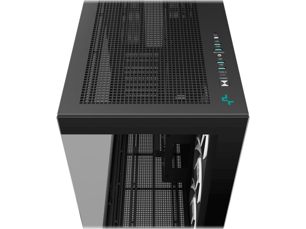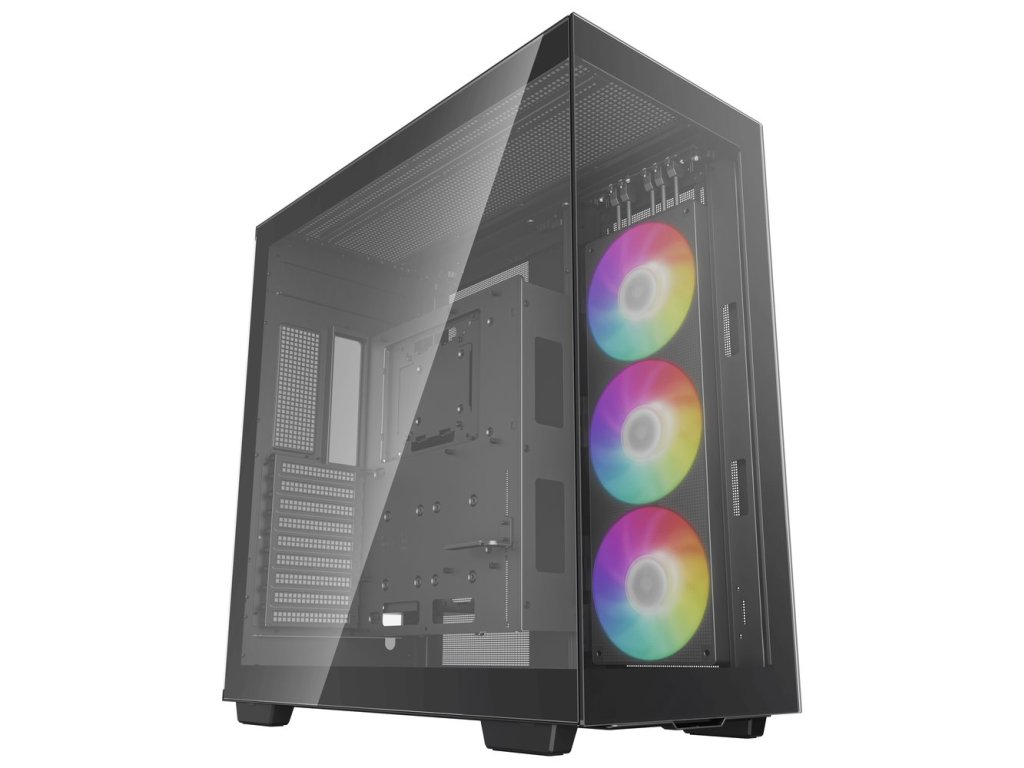 Skříň, Middle tower, bez zdroje, E-ATX, 1× 420mm ARGB ventilátor, 4× USB 3.0, 1× USB-C, průhledná bočnice a přední panel, černá