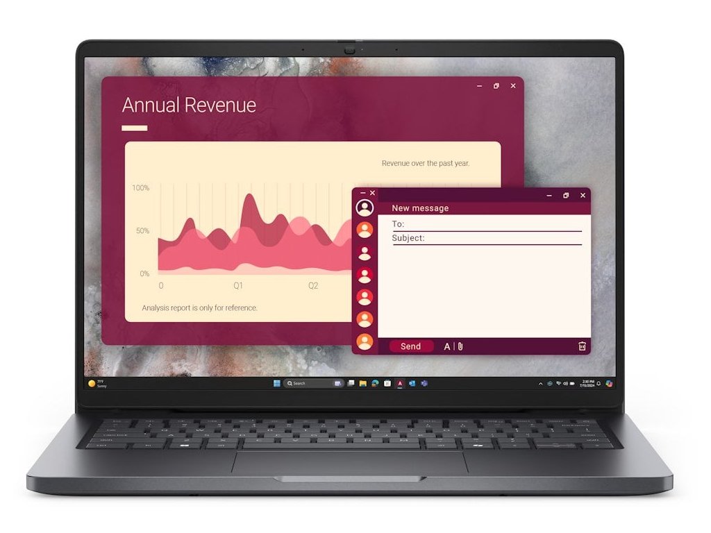 Notebook DELL Pro 14 PC14250 je určen pro práci i zábavu, s podporou umělé inteligence. Tento model s lehkostí zvládne náročné výpočetní úlohy i multitasking, a k tomu ještě sfoukne každodenní kancelářskou rutinu.