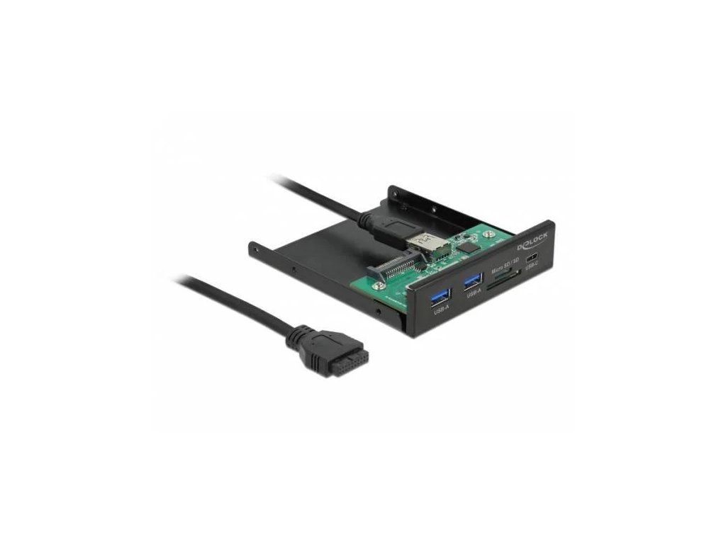 Delock 3.5” USB 3.2 Gen 1 přední panel 1 x USB Type-C™ + 2 x USB Typu-A + SD a slot Micro SD
