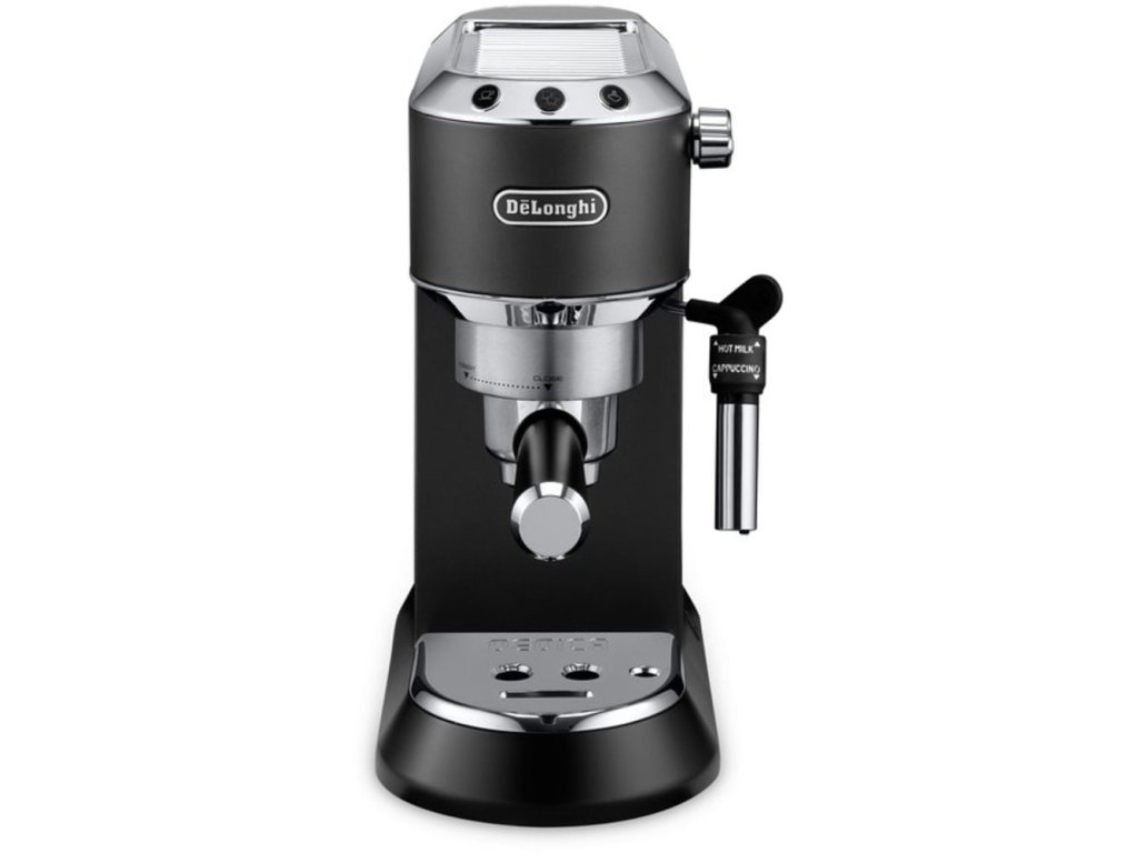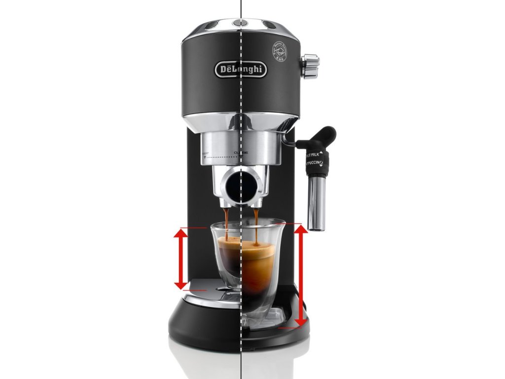 pákový kávovar • připravíte espresso, latte, macchiato, cappuccino • příkon 1 450 W • tlak 15 barů • 1,2l odnímatelná nádržka na vodu • parní tryska • nahřívač šálků • nastavení množství kávy • cappuccino systém • elektronický ovládací panel