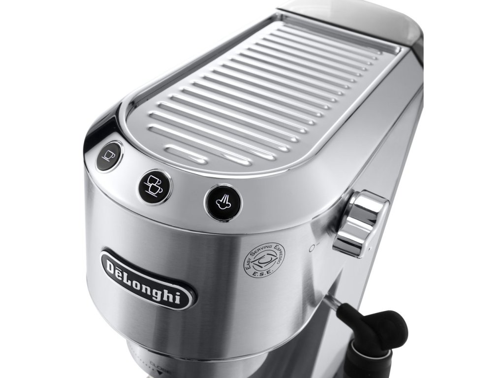 pákový kávovar • připravíte espresso, latte, macchiato, cappuccino • příkon 1 350 W • tlak 15 barů • 1,2l odnímatelná nádržka na vodu • parní tryska • nahřívač šálků • nastavení množství kávy • cappuccino systém • elektronický ovládací panel