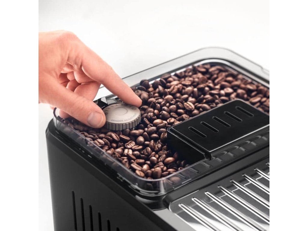 Doporučená maximální velikost šálku je 160 mm. Pomocí Wi-Fi připojení a mobilní aplikace Coffee Link získáte přístup k více než 100 receptům a dálkovému ovládání. Technologie Bean Adapt se absolutně přizpůsobí druhu kávy. S technologií Cold Extraction připravíte jedinečné cold brew, a to do 5 min. Kávovar má paměť pro 4 uživatelské profily. Nechybí ani možnost regulace intenzity a teploty kávy, množství vody nebo hrubosti mletí. Kávovar je vybaven integrovaným ocelovým mlýnkem a má 13stupňové mletí. Kávovar je vhodný pro zrnkovou i mletou kávu. Po ukončení přípravy se aktivujte automatický čisticí program pro karafy, který brání usazování zbytkům kávy. De'Longhi dlouhodobě a bezchybně vytváří kvalitní a spolehlivé kávovary, které vám každý den vykouzlí úsměv na tváři.