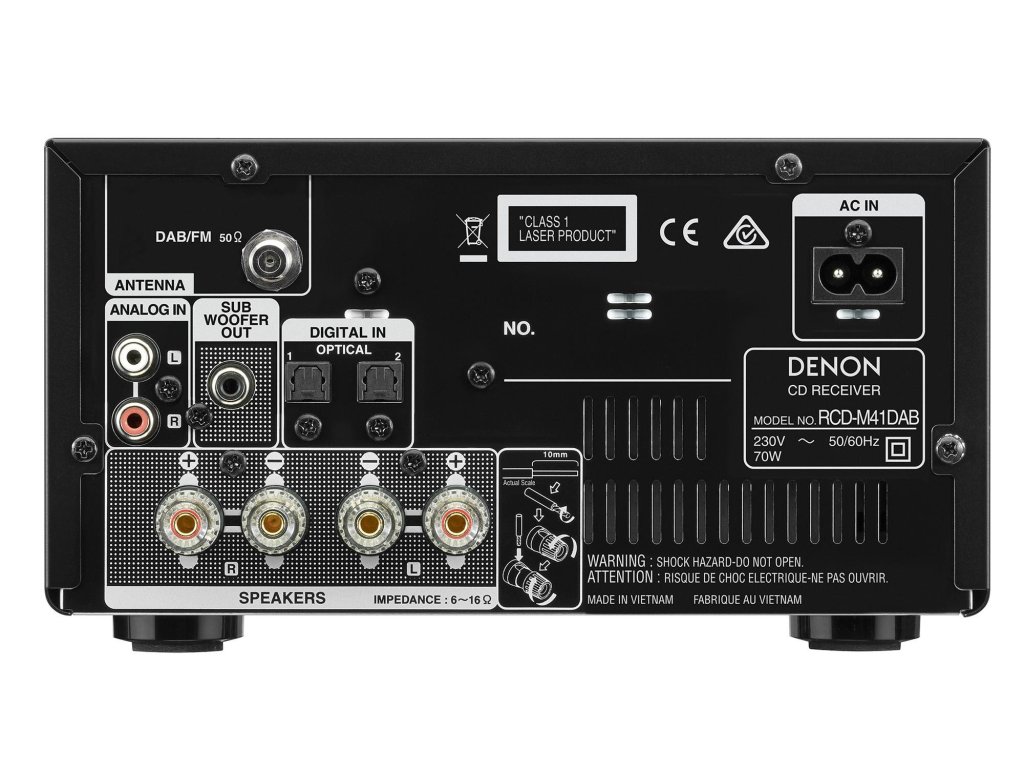 Na základě mnohonásobně oceněného modelu RCD-M40DAB, postavil Denon nový model RCD-M41DAB, který má vylepšený zvuk, styl a výbavu. Nově vyvinutý diskrétní analogový obvod zesilovače zkracuje signálové cesty pro větší čistotu zvuku a celkový výsledek, zatím co nová Bluetooth integrace kombinuje pohodlý s možností snadného vypnutí této funkce v době kdy jej nepoužíváte pro zamezení negativního vlivu na zvuk z jiných zdrojů. Design doznal kosmetických úprav také a více se v něm odráží prvky špičkových dělených modelů řady 'NE'. Centrální jednotka RCD-M41DAB má 2 digitální optické vstupy pro snadné připojení televize, set-top boxu nebo jiných digitálních zařízení zasluhujících si vyšší kvalitu zvuku. Také má vestavěnou CD mechaniku a FM tuner s DAB/DAB+. Přidejte ještě reproduktory SC-M41 a dostanete kompletní D-M41DAB systém s nejlepším HiFi zvukem.