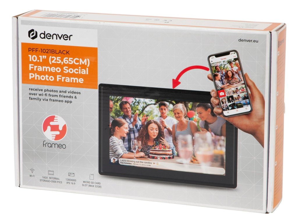 Digitální fotorámeček, 10,1" dotykový IPS displej s rozlišením 1280x800, 16 GB interní úložiště, Frameo software, přenášení ze smartphonu, časovač, automatické vypnutí, černý