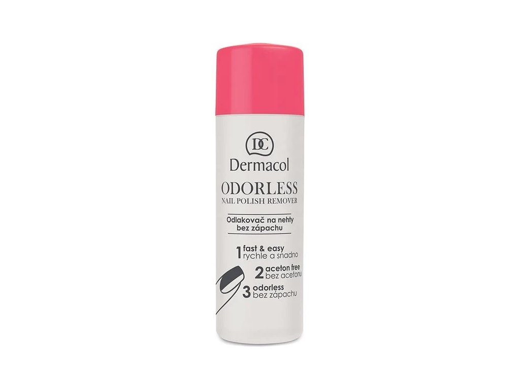 Odlakovač na nehty Dermacol Odorless. Odlakovač Dermacol Odorless vhodný pro přírodní i umělé nehty bez nepříjemného zápachu klasického odlakovače. Snadno a šetrně odstraní lak z povrchu nehtů. Neobsahuje aceton.