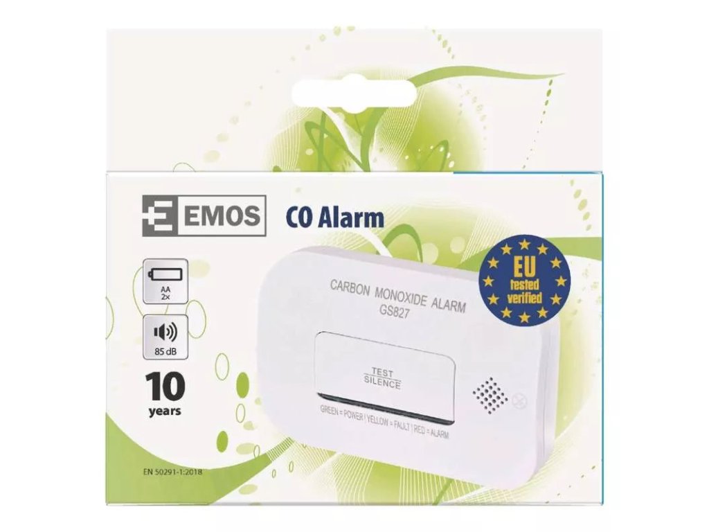 Detektor CO s opticko-akustickou signalizací a životností 10 let.