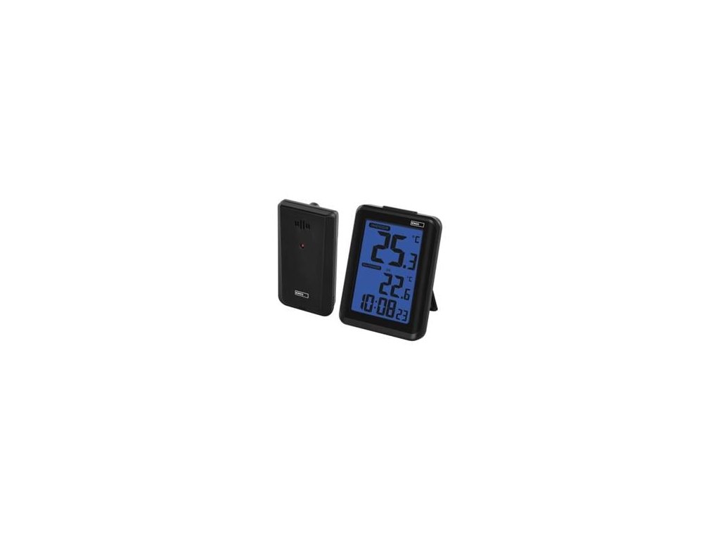 Teploměr má bezdrátové čidlo s dosahem až 50 m.Výhody produktukontinuální zobrazení maximální a minimální teploty a vlhkostiměření a záznam hodnoty tlakuměří vnitřní a venkovní teplotu a vlhkostmožnost pověsit na zeď i postavit na stůlindikace slabých baterií