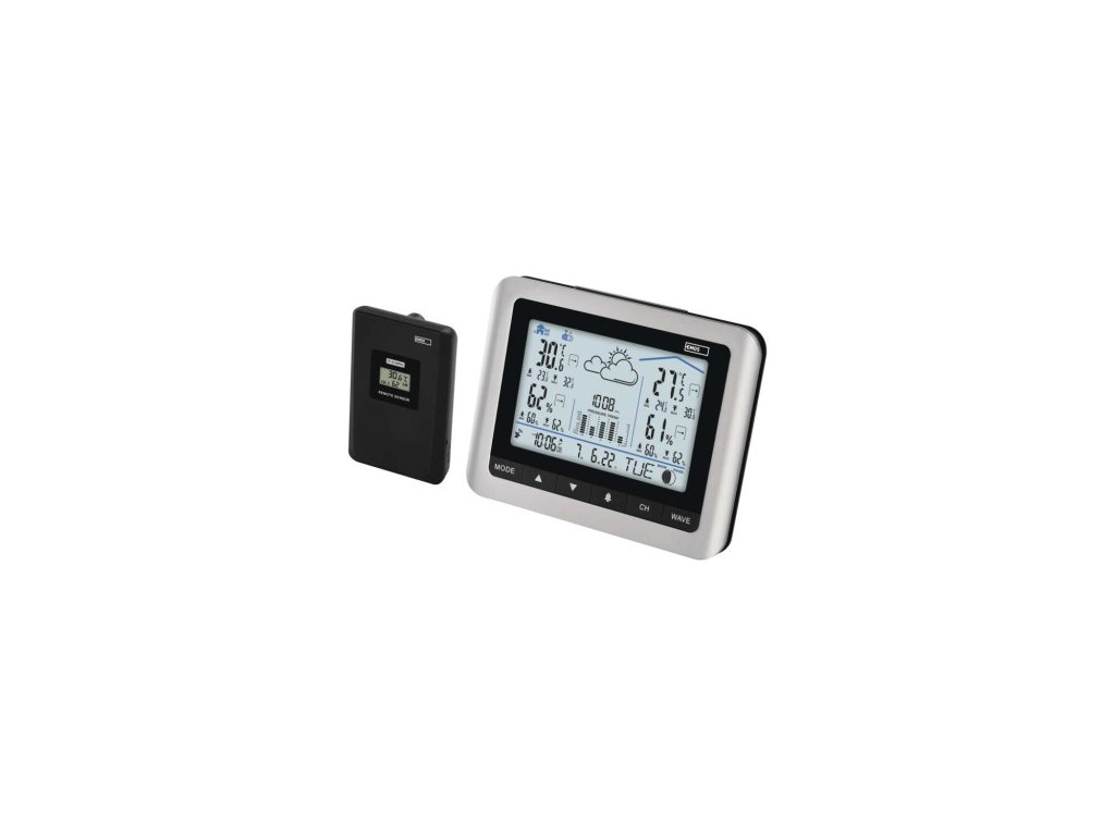 Díky této meteostanici budete vždy s jistotou vědět, na jaké počasí se připravit a nic vás nepřekvapí. Aktuální informace vždy k dispozici.Výhody produktukontinuální zobrazení maximální a minimální teploty a vlhkostiměření a záznam hodnoty tlakuměří vnitřní a venkovní teplotu a vlhkostmožnost pověsit na zeď i postavit na stůlindikace slabých bateriíbílé LED podsvícení displeje