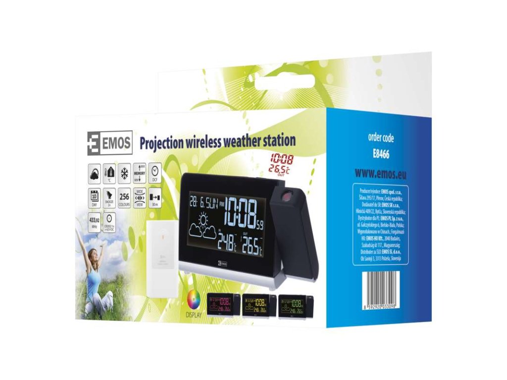 Domácí bezdrátová meteostanice E8466, projekční