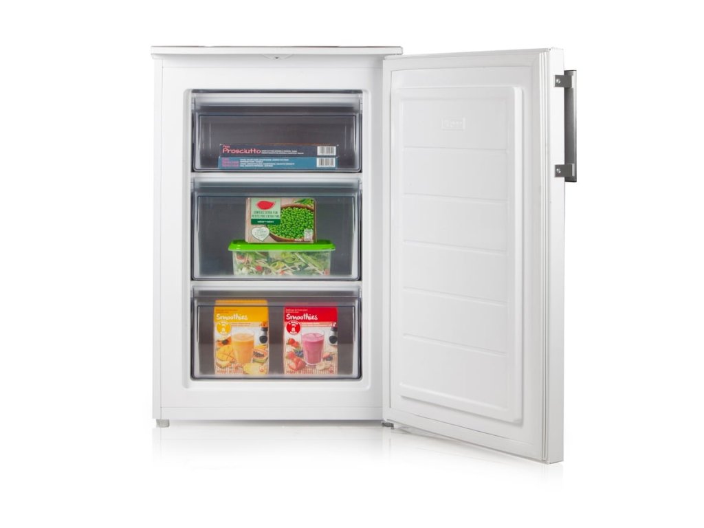 Kompaktní šuplíkový mrazák s praktickou výškou 85 cm, čistém objemu mrazáku 87 l a nízkou spotřebou bude vhodný pro použití všude tam, kde je potřeba rozšířit mrazící kapacity, nebo na chatu, či jiného rekreačního objektu apod. Mrazák lze díky tichému chodu kompresoru použít i přímo v obytných prostorech a nebude vás nijak rušit. Mrazák je vybavený 3 průhlednými šuplíky, které lze z mrazáku snadno vyjmout úplně ven.