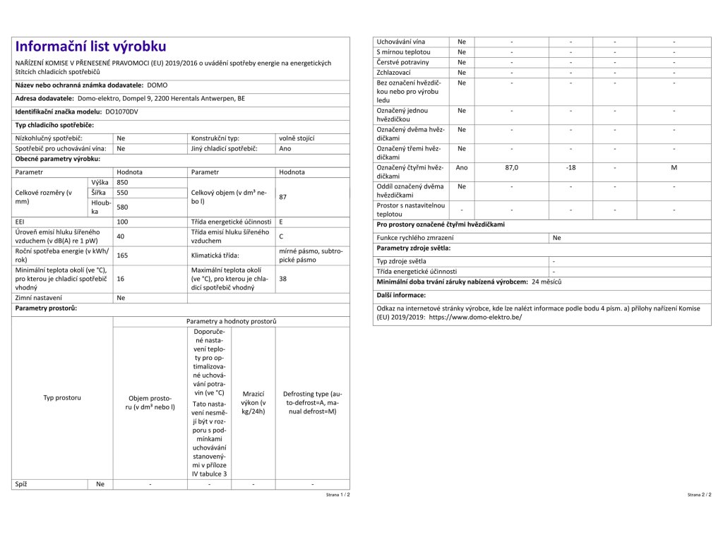 DOMO DO1070DV Šuplíkový mrazák 87 l