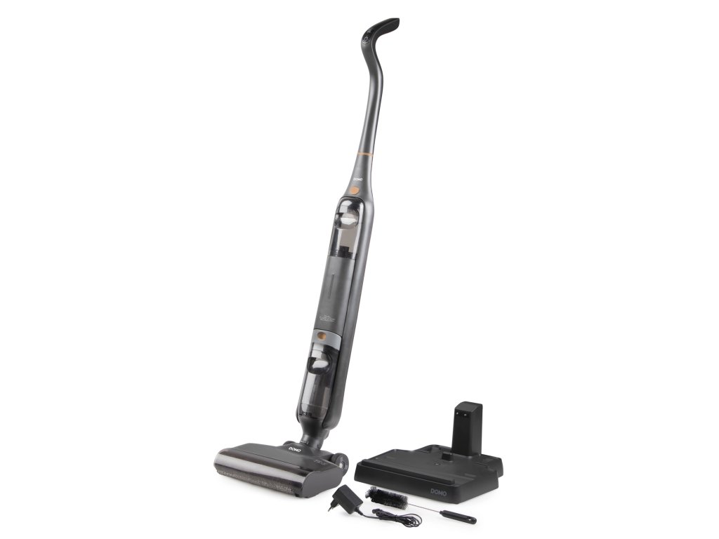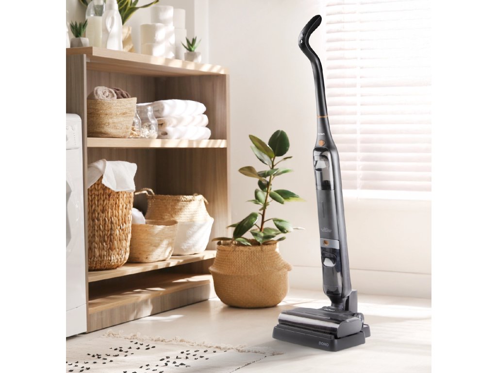 Usnadněte si úklid s temně šedým podlahovým čističem DOMO DO1189SW. Tento bezdrátový mop kombinuje vysávání a elektrické vytírání v jednom pohybu.