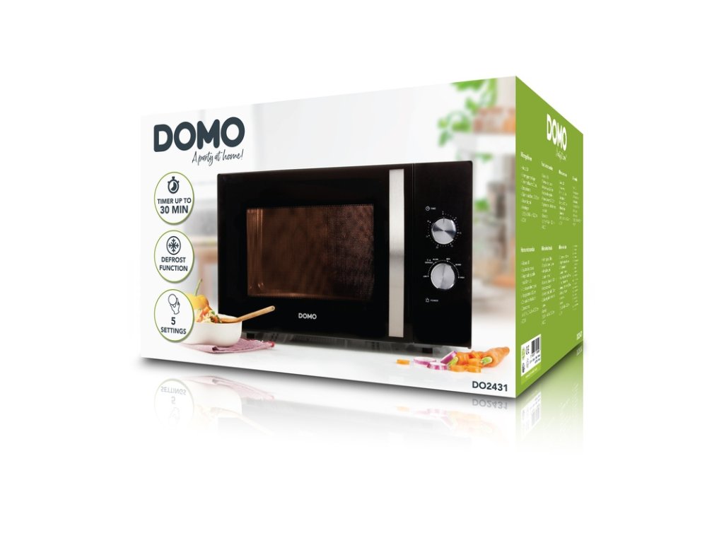 Mikrovlnná trouba Domo DO2431 vyniká svým vysokým výkonem a velkým vnitřním objemem, díky kterému pojme i větší nádoby. Elegantní černé provedení skvěle doplňují nerezové prvky, a proto se tento spotřebič perfektně hodí do každého moderního interiéru.