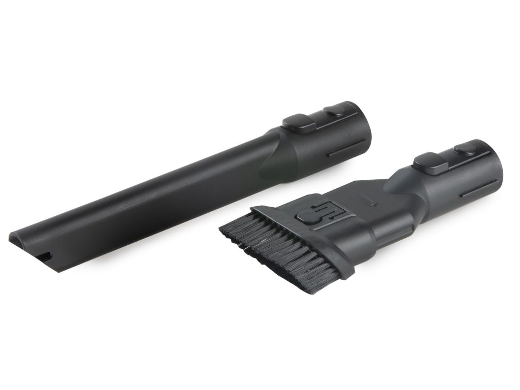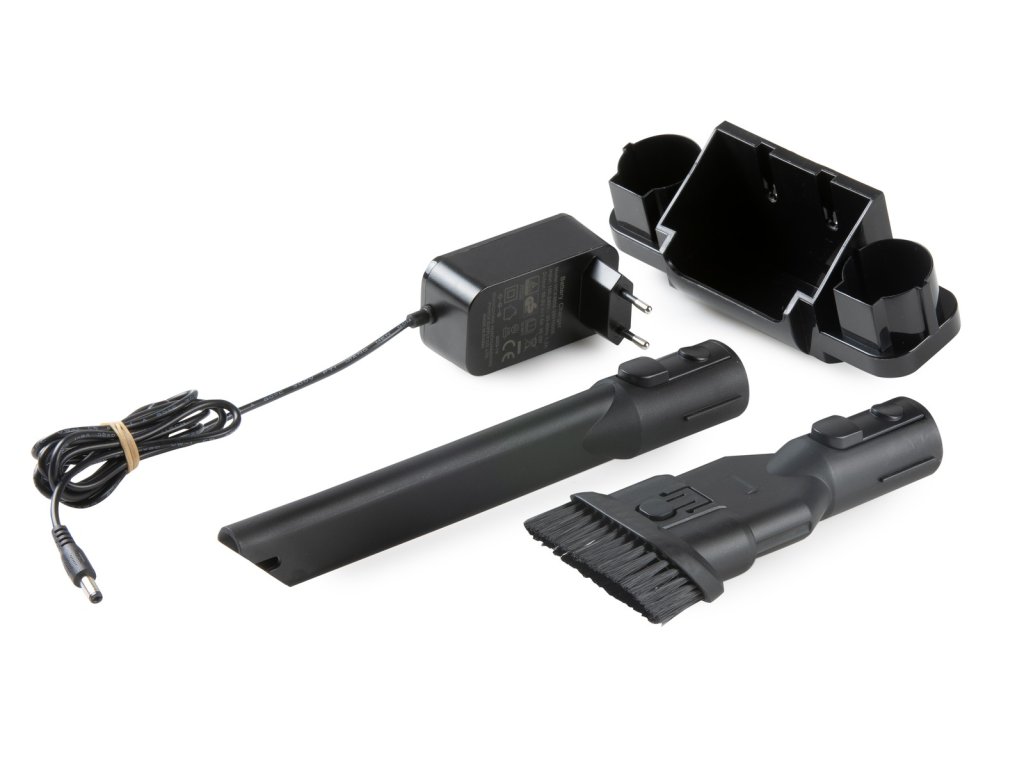 Veškeré hubice lze jednoduše nasadit přímo na motorovou část, nebo na sací trubici. Kartáč se štětinami různé tvrdosti - tvrdší sbírají hrubé nečistoty a jemné stírají z povrchu prach. Kartáč lze z podlahové hubice snadno vyjmout a vyčistit. Měkčená gumová pojezdová kolečka zajišťují snadný a absolutně tichý pojezd po podlaze. Průhledná nádoba na prach.