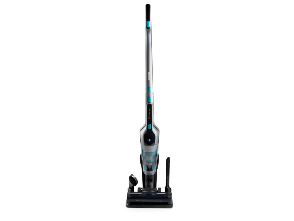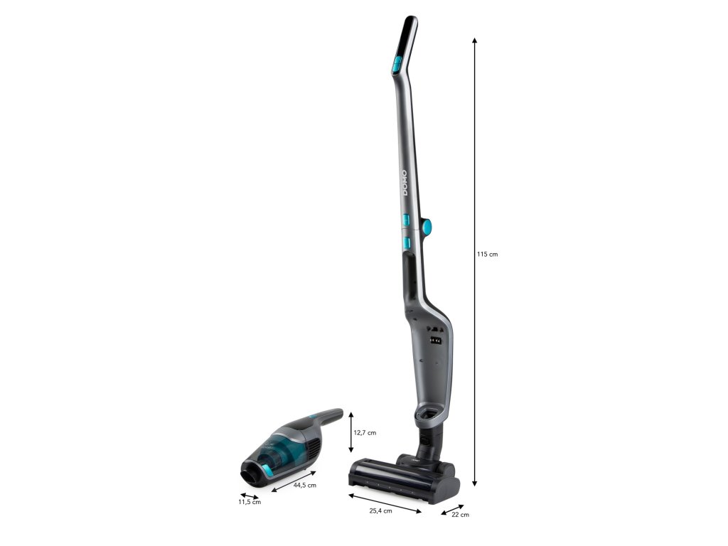Volně stojící tyčový vysavač s odnímatelným ručním vysavačem. Napájení Li-ion akumulátorem 21,6 V s výdrží až 55 min. Skládací rukojeť, 3 rychlosti, LED displej, LED osvětlení.