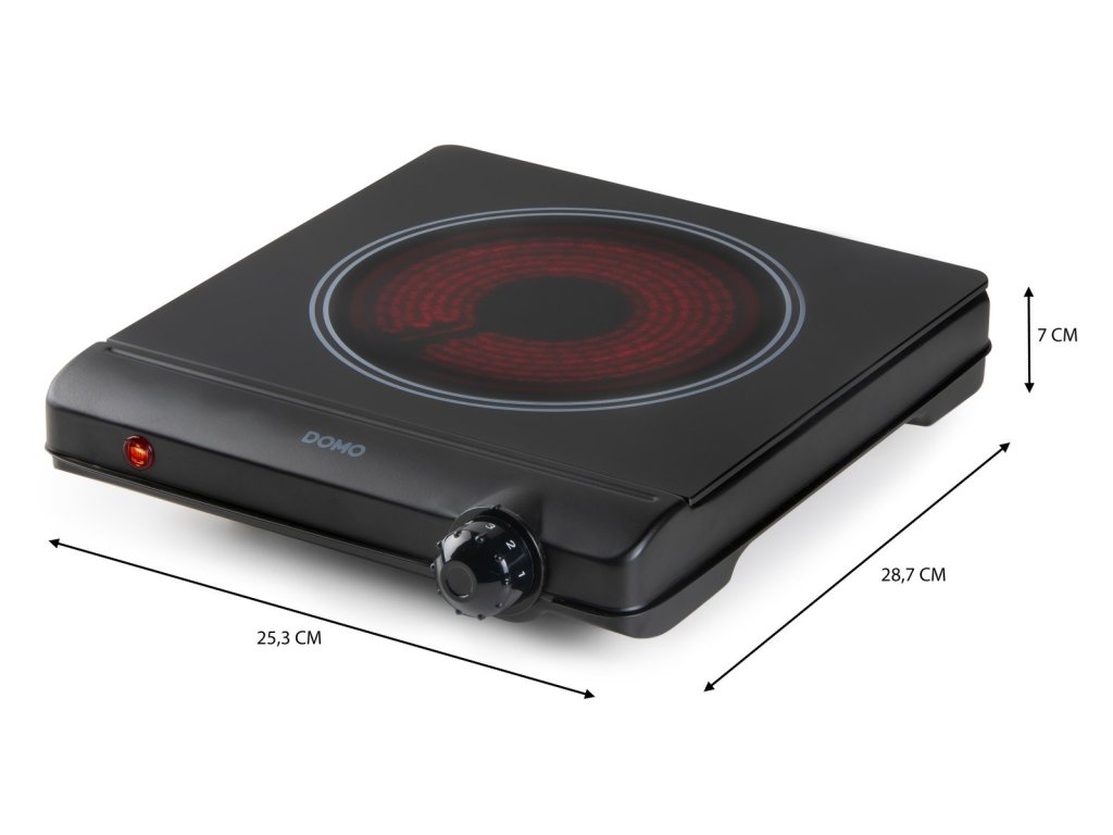 lektrický jednoplotýnkový vařič se sklokeramickou deskou o průměru 18 cm. Vysoce efektivní a rychlý ohřev infračervenou technologií. Nastavení výkonu v 6 stupních.