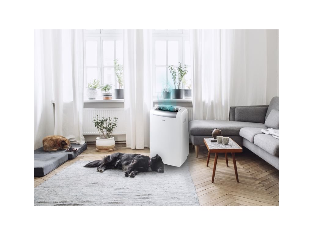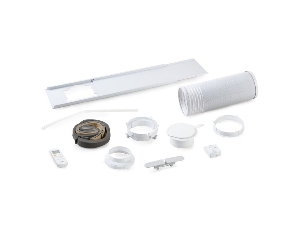 K základní výbavě klimatizace patří dálkové ovládání s displejem a integrovaným dálkovým termostatem pro snadné ovládání a nastavování všech dostupných funkcí a sada pro montáž flexibilní hadici pro odvod teplého vzduchu na zeď. Připojování a odpojování hadice usnadňují příruby, díky kterým lze hadici jednoduše nacvaknout na přístroj i na konzolu na zdi. K nadstandardní výbavě klimatiace se pak řadí sada pro montáž do posuvných oken. S pojezdovými kolečky lze s klimatizací snadno posouvat po místnosti a v případě nutnosti přenosu do jiné místnosti můžete využít i pevná integrovaná madla po bocích přístroje. Bezúdržbový provoz pak umožňuje funkce recyklace kondenzované vody, nebo možnost připojení hadice pro stálý odtok kondenzátu.