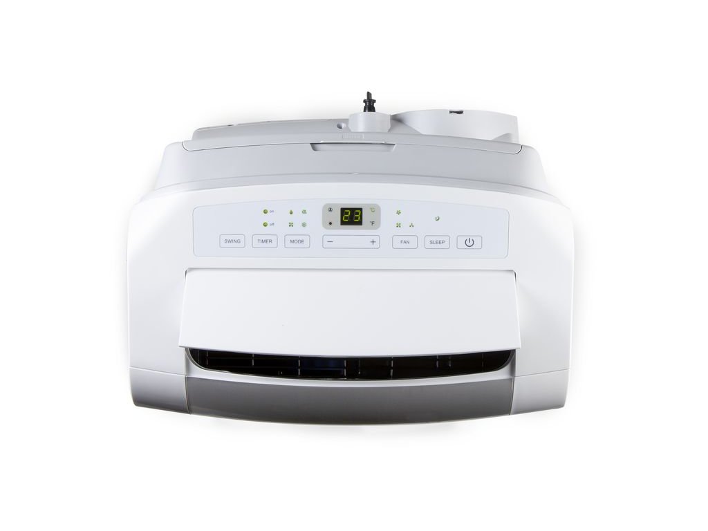 Výkonná mobilní klimatizace s plně automatickým provozem funkcí chlazení i topení. Výkon 12000 BTU si poradí s vychlazením místnosti o podlahové výměře až 45 m2, nebo až 37 m2 v případě vytápění. Klimatizaci lze plně ovládat pomocí dálkového ovládání, využít nastavení automatického zapnutí i vypnutí v nastavenou dobu, nebo speciální noční režim s vypnutým displejem.