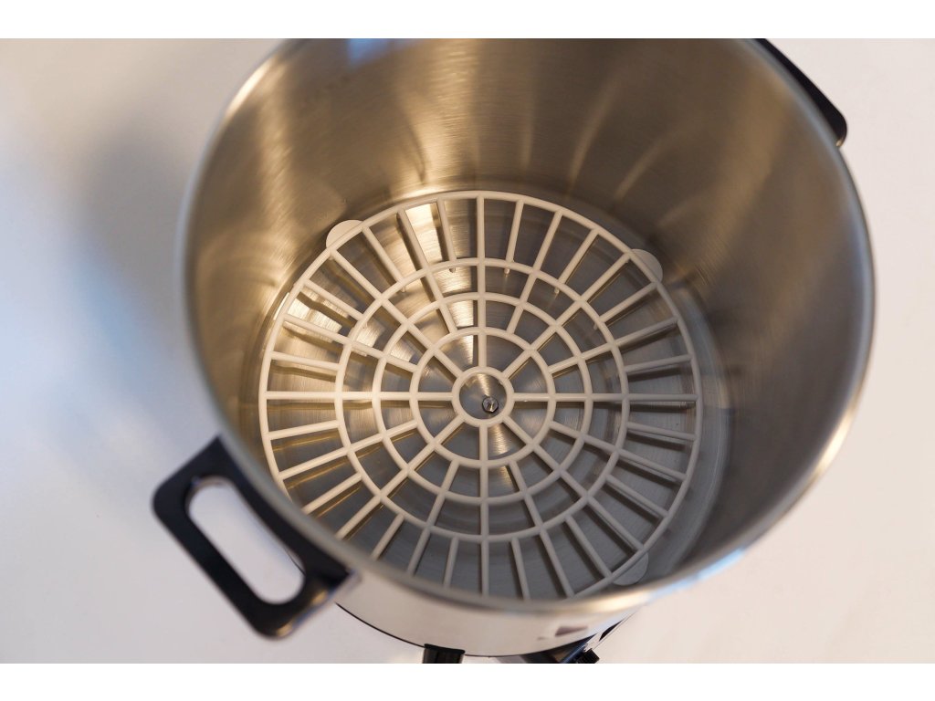 Plně automatický zavařovací hrnec s přehledným LCD displejem a plně digitálním ovládáním. Po dosažení nastavené teploty se automaticky spustí zavařování po nastavenou dobu - jednou nastavíte a spustíte a hrnec si vše ohlídá sám. Díky přesnému termostatu a záslepce otvoru kohoutu je tento zavařovací hrnec vhodný jak pro zavařování a sterilizaci ovoce i zeleniny, tak i pro ohřev horkých nápojů, guláše a jiných omáček.