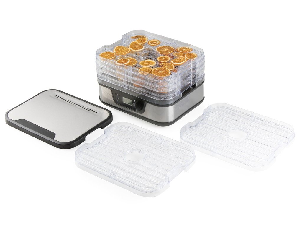 Kompaktní sušička ovoce se 7 sušícími patry vám usnadní přípravu sušeného ovoce z vaší zahrady, perfektně usuší i houby, nebo zeleninu z vaší zahrádky. Jednoduše nastavíte teplotu sušení a čas a sušička se o vše postará sama. Rovnoměrně zbaví vložené suroviny veškeré vlhkosti a umožní tak jejich dlouhodobé uchování.